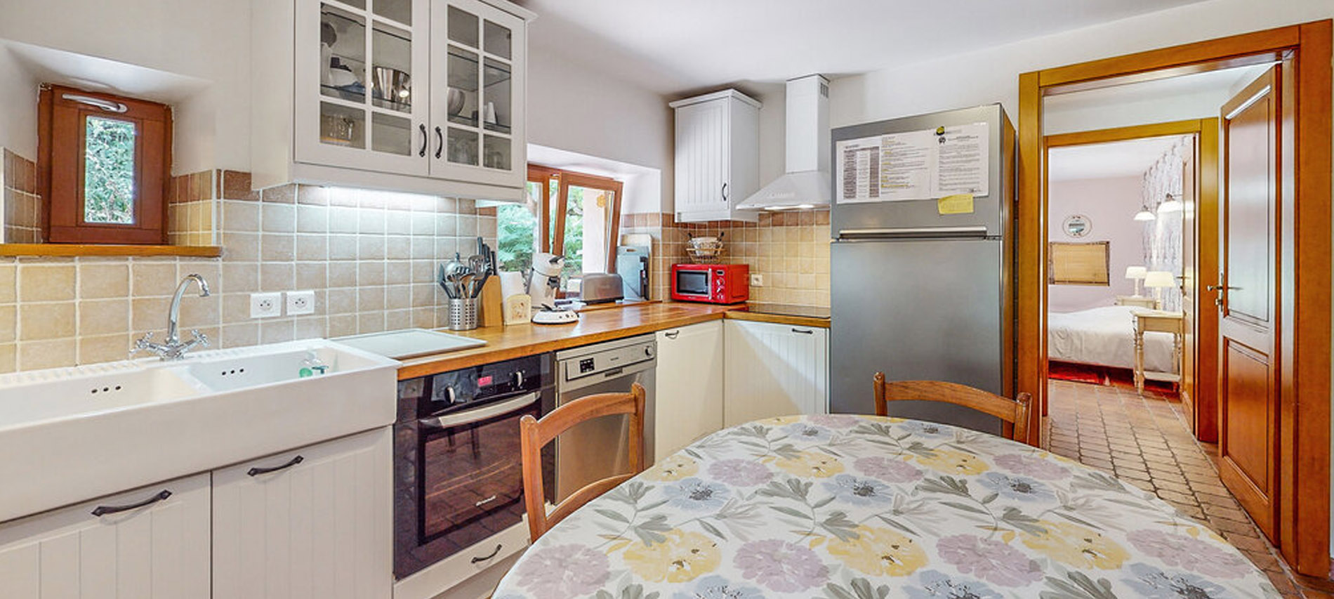 Le gîte est aménagé dans une ancienne ferme rénovée et divisé en 2 grands espaces. L’un d’eux permet d’accueillir jusqu’à 24 personnes autour d’une grande table conviviale, parfaite pour partager des moments inoubliables. Après un bon repas, installez-vous confortablement sur le canapé et prolongez la soirée autour du poêle à bois.