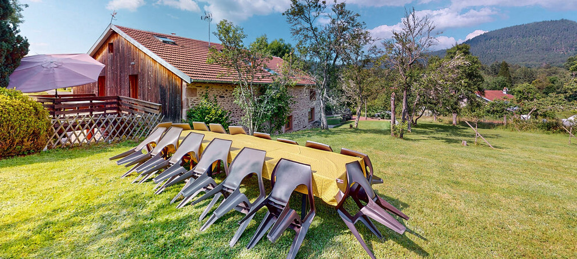 Nos gîtes sont aménagés dans une ancienne ferme vosgienne rénovée, disposant d’un espace extérieur convivial avec salon de jardin, barbecue, chaises de détente et jardin. Le tout à seulement quelques mètres de la forêt et du sentier de randonnée GR533.