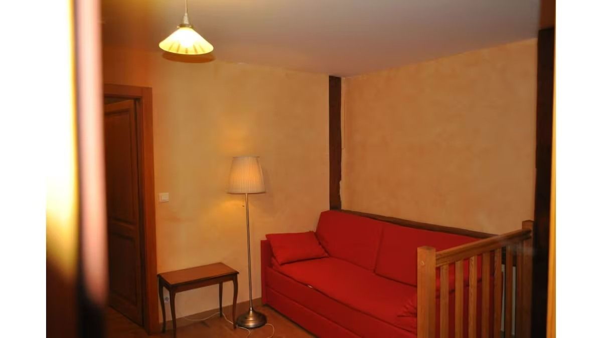 - Espace détente sur le palier avec canapé convertible en deux lits superposés